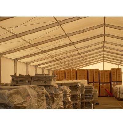 篷房有钢铝和全铝。产品宽度由3米到50米,节距3米或5米任意增加。内部没有立柱空间利用率 , 可根据场地情况的不同采用钢钎或承重地盘固定具有良好的抗风性。篷布顶部采用PVC涂层布具有防紫外线 阻燃 自洁等特点,围布采用透光布。
