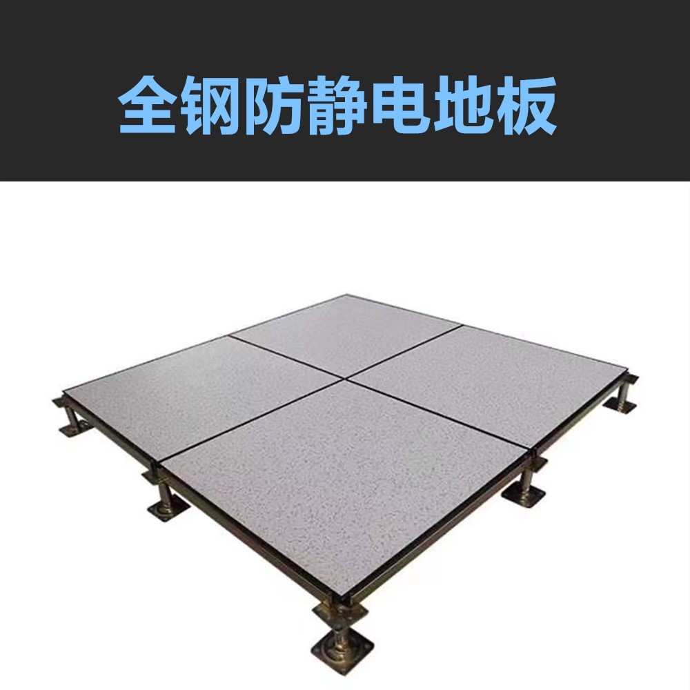 全钢防静电地板上层为冷轧钢板,下层采用采用优质抗拉钢板冲压成型,外面磷化后进行喷塑(优质的塑粉)处理,两层经过冲压形成钢壳,钢壳内填充发泡水泥;上表面粘贴高耐磨防静电贴面三聚氢胺贴面(HPL)或者防静电PVC贴面,四周镶嵌导电边条。