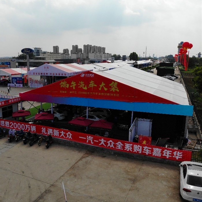 篷房有钢铝和全铝。产品宽度由3米到50米,节距3米或5米任意增加。内部没有立柱空间利用率100% , 可根据场地情况的不同采用钢钎或承重地盘固定具有良好的抗风性。篷布顶部采用PVC涂层布具 有防紫外线 阻燃 自洁等特点,围布采用透光布。篷房跨度有从6米,8米,9米,10米,15米,18米到50米等。