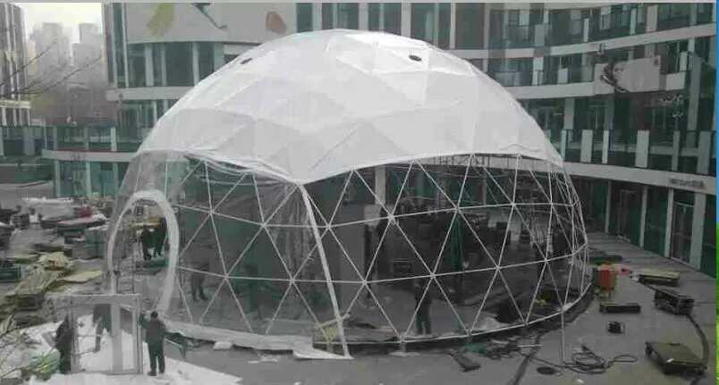 篷房有钢铝和全铝。产品宽度由3米到50米,节距3米或5米任意增加。内部没有立柱空间利用率100% , 可根据场地情况的不同采用钢钎或承重地盘固定具有良好的抗风性。篷布顶部采用PVC涂层布具 有防紫外线 阻燃 自洁等特点,围布采用透光布。篷房跨度有从6米,8米,9米,10米,15米,18米到50米等。