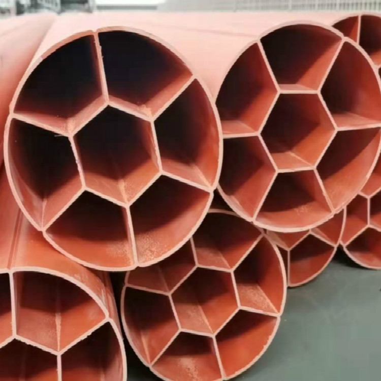 电力七孔管是硬直实壁管,内、外壁光滑平整,颜色呈桔红色,明亮、醒目。