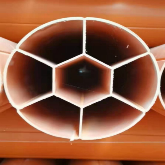 电力七孔管是硬直实壁管,内、外壁光滑平整,颜色呈桔红色,明亮、醒目。