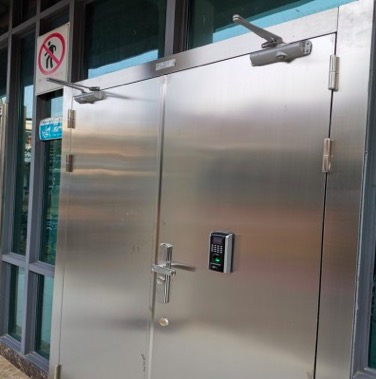 锁具配置:分离式机械锁,电机锁,联动结构,双人电子密码锁(锁间距不小于2米),达到双人双锁管理功能(分离式机械钥匙锁达到GA/T 73-2015的有关规定,达到一级防盗标准)。