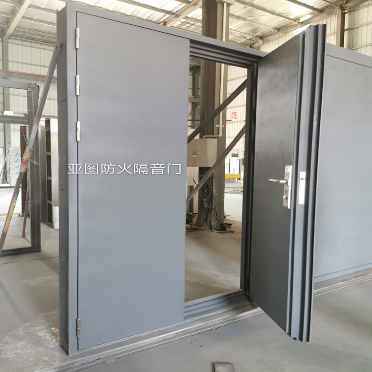 (3)隔音防火门:在门扇木框架中嵌填岩棉等吸音材料,外部用石棉板、镀锌铁皮及耐火纤维板镶包,四周缝隙用海绵橡皮条粘牢封严。