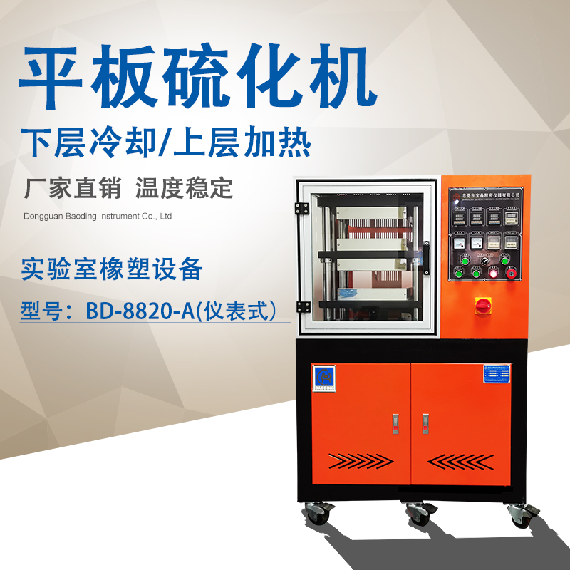原料放于铸模内,夹于本机电热平板间加以压力及温度,使原料成型,以供试验,做为工厂大量生产配料之依据。本机装有PLC程序控制彩色触摸屏,人机界面作业系统可设定压力、温度、时间和排气次数,硫化过程实时显示和监视,所设模压程序全数自动完成。